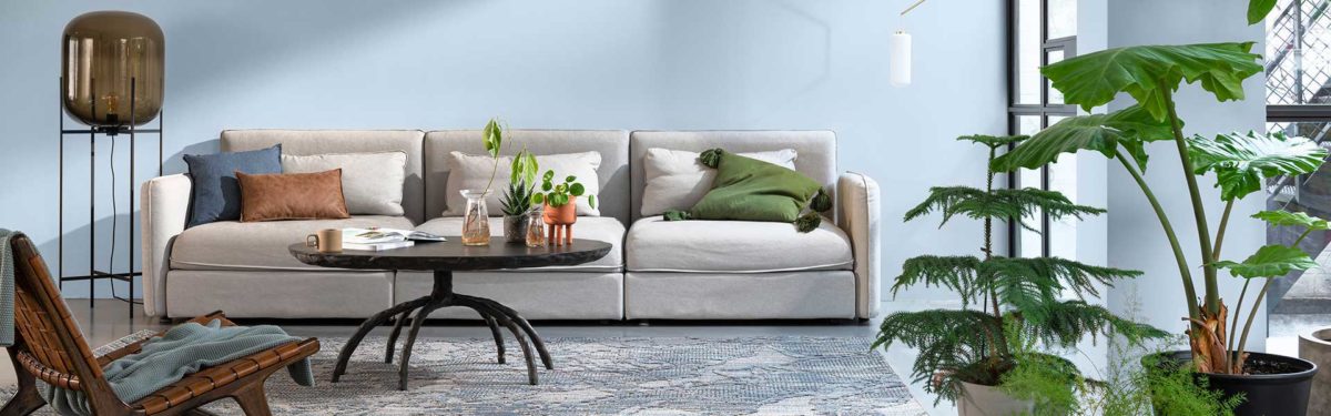 Greenhouses are full of fresh greens and blues and will bring nature into any room. Bright Skies is the perfect backdrop with plants and natural materials, which include bark and cork. These immediately inject the positivity of nature into your space. This palette contains four colours of similar tones, with Moon Cloud, River Valley and Denim Drift working alongside Bright Skies.
