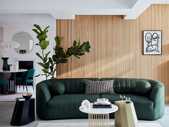 Biophilia reigns supreme in 2023 and that’s reflected in our sofa choices. ‘This summer, our love of botanicals evolves from biophilic patterns to a more luxurious interpretation of natural beauty, drawn from a palette of forest greens and earthy neutrals, enriched with glints of gold,’ says a spokesperson for DFS. ‘The unexpected mix of materials and forms is key to creating this sleek modern look that is rooted in nature. Warm wood and woven natural fibres sit alongside boucle, the textile of the moment, while key design pieces acquire back-to-the-future curves with echoes of a more organic world.’ The Izzie four-seater sofa in forest green, pictured below, is available from 23 March 2023. Prices from £999.