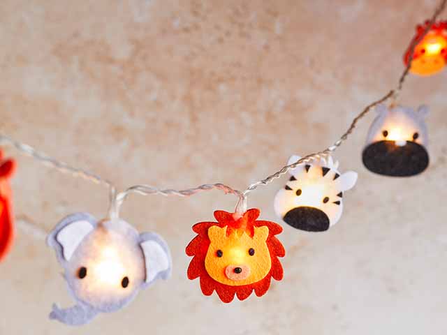 Further the jungle theme with these adorable felt lights, ideal for creating a cosy corner to the nursery. Perhaps near a shelf of jungle stories and a cosy chair, perfect for feeds and when they;re a bit bigger, animal-themed story time!