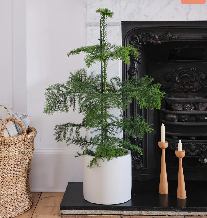 “With it’s soft, symmetrical branches and traditional conifer-like shape, the Norfolk Island pine is often dubbed a ‘living Christmas tree’. It’s perfect for creating a classic holiday look without bringing in a cut tree.