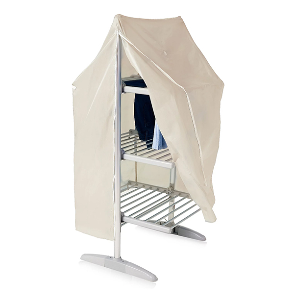This drying pod circulates hot air around your clothes using its air-tight cover. It can hold up to 12 items on hangers and reduces the need for ironing.