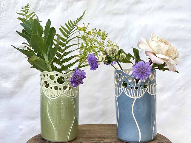 Cow Parsley vases sage and sky blue, £42, Welsh Otter