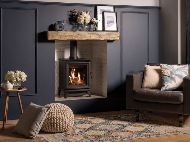 You can still achieve the Cottagecore look with an electric log burner or gas log burner, with the ease and convenience of being able to turn the heat on or off at the touch of a button. Gas stoves, such as the award-winning Gazco Loft, come with a remote control for igniting and extinguishing your stove from a distance and offer tall dancing flames and authentic log fuel effects for realism.