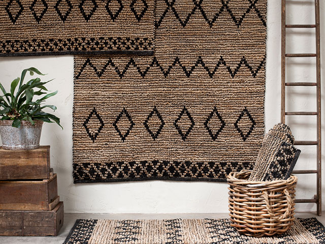 If you’re new to pattern, use accessories like rugs or lighting to add steadily into your schemes. Pictured: Ambara Jute rug from £290 from Nkuku.