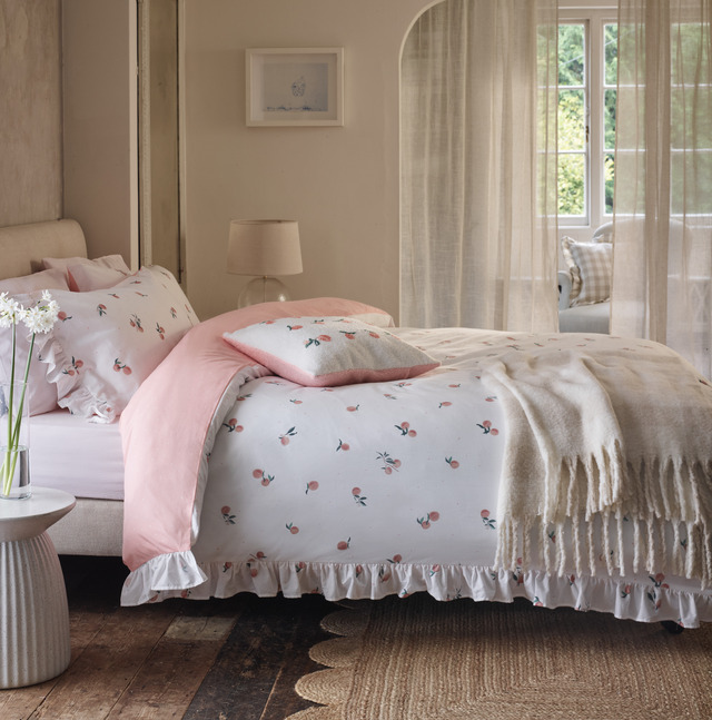 - Peach frill edge cotton duvet set, from £16 – buy here