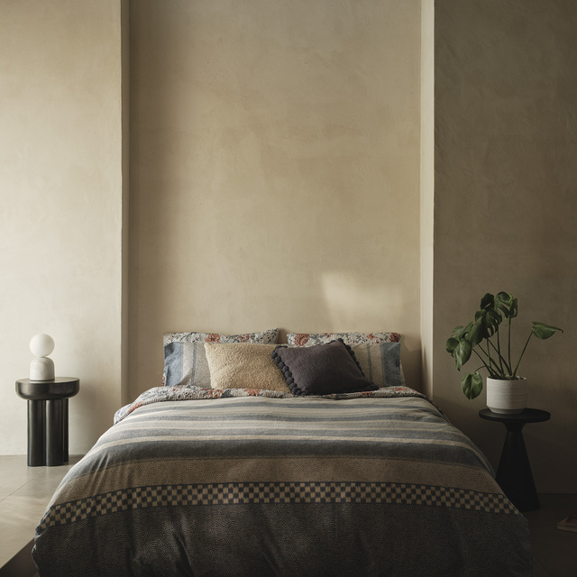 Keeping a pop of greenery and layering with cushions are also great touches to bring the stripped-back Serene look into your home.