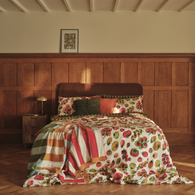 Think gingham table settings, retro check, bold floral and quirky food-inspired prints adding warmth and comfort.