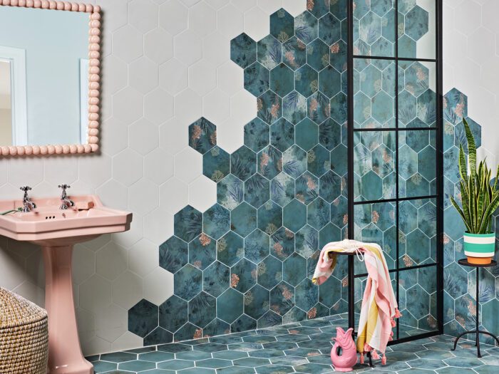 Grazzie Wilson, from Ca’ Pietra Tiles, adds, “Slips account for a large proportion of accidents in the home, especially among older generations and teeny tots. Make this your first consideration when tile shopping and narrow down your search to designs that have an R rating of 10 or above. This basically means that the surface has been tested to ensure it has sufficient resistance when used as flooring. We advise a minimum of R10 for bathrooms, kitchens and hallways, but if you fancy a wet room, go for R11.”