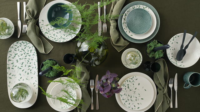 - Porcelain Carve Green 12-piece tableware set, £192 – buy here