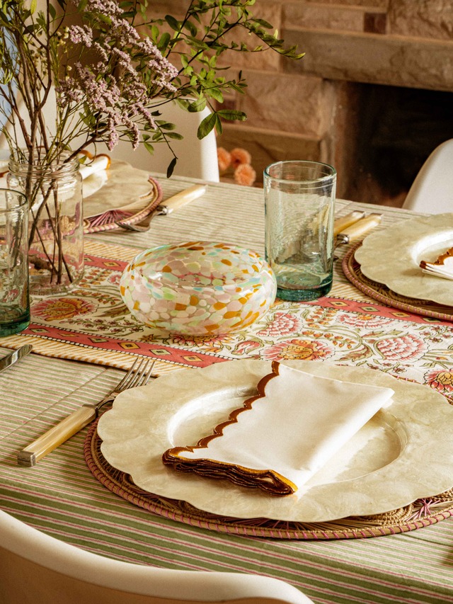 “Co-ordinated placemats and napkins bring a touch of class and refinement to any tablescape. Try matching them with floral spring patterns, and for the extra step match the colour scheme with the flowers and accents on your table.”