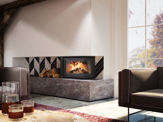 Dik Geurts fires also extend to elegant and practical built-in wood fires with a choice of sizes, capacities and aspects. As well as standard chimney inserts, there are two-sided corner fires, three-sided panoramic fires and even see-through tunnel fires that can be viewed from adjoining rooms.
