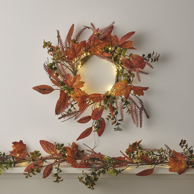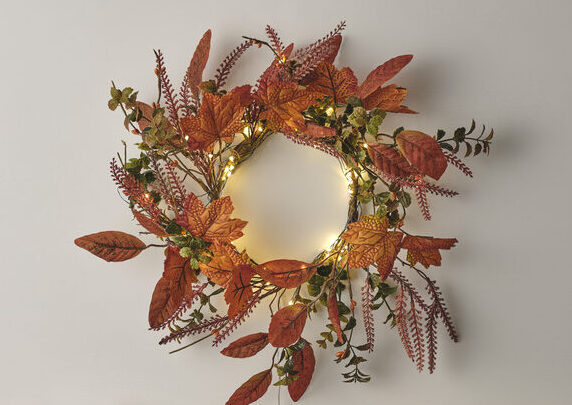• 40cm Pre Lit Maple Lead Autumn Wreath, £39.99 from Lights4fun – buy here