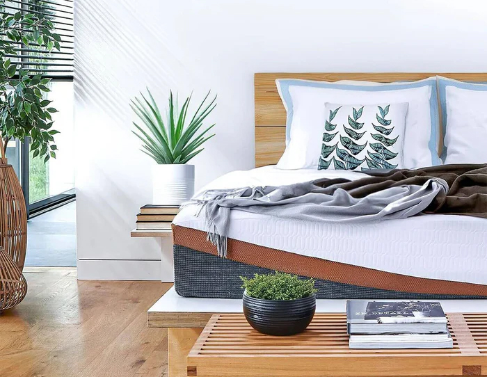 The Emma hybrid original mattress has a temperature-regulating top cover made from breathable Airgocell foam, which absorbs moisture and keeps air flowing through the mattress.